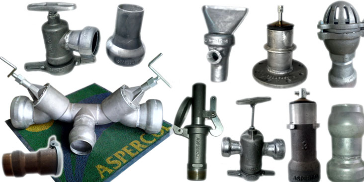 Nuestro sistema de Acoples (AMES-Bola Campana) es el más versátil del mercado. Para su manejo no se necesita de horquillas, aldabas o palancas evitando la rotura de partes que sobresalen. Estando sometidos a la presión del agua, su sellado es hermético y seguro, cuando se suspende la presión del sistema drenan automáticamente. Son fundidos en Aluminio Aleado teniendo así alta resistencia a la corrosión y son livianos.