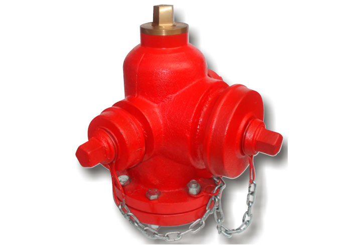Tipo Milan cuerpo, tapas y brida en hierro, bocas de salida pentagonal y vástago en bronce. Diámetro de entrada 3” extremo liso dos salidas de 2 ½”.